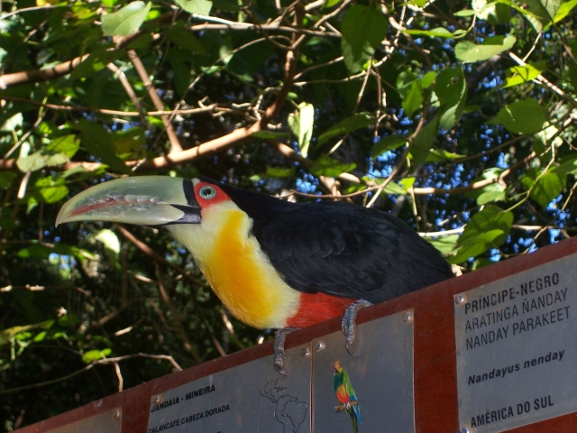 Birds of flesh and feathers at Iguassu Falls Birds sanctuary -- do not feed the Tucan!