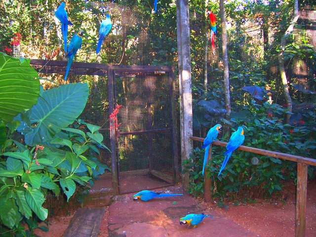Brilliant Blue Macaos at Iguassu Falls Birds sanctuary